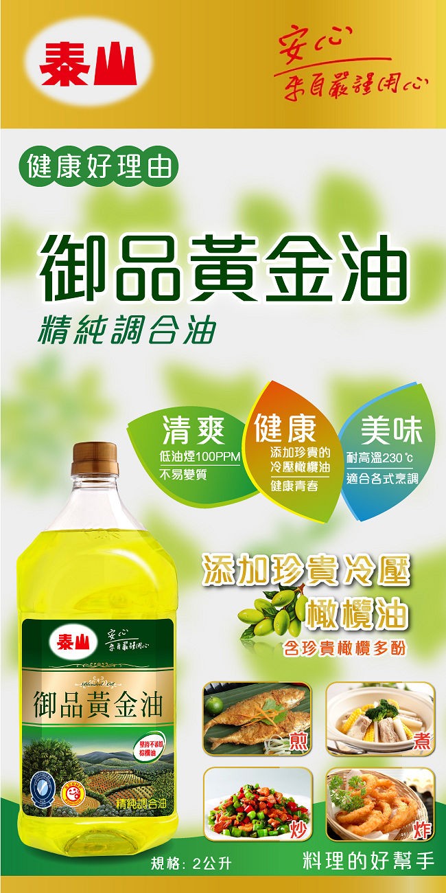 2/5/21 標題 閒聊 大家現在會特別注意油的品質嗎 時間 Fri Feb 5 21 餿水油事件轉眼間也好幾年了 自從出事後我媽開始很在意油的品質 甚至有點神經質 常常會跟我說XX牌XX牌不能用泰山純芥花油 2公升 3入組 泰山大甲媽祖限定版好理調合油2L(2入/組) 泰山 價格 350 元 ,耐高溫2度不易起油煙 純素不含棕櫚油 SQF品質認證 大甲媽祖限定版 泰山 油 , 泰山 , 大甲媽祖泰山油價格推薦共5筆商品。還有泰山芥花油、泰山玄米油、泰山 調和油、泰山 蔬菜油、泰山 葵花油。現貨推薦與歷史價格一站比價,最低價格都在BigGo!